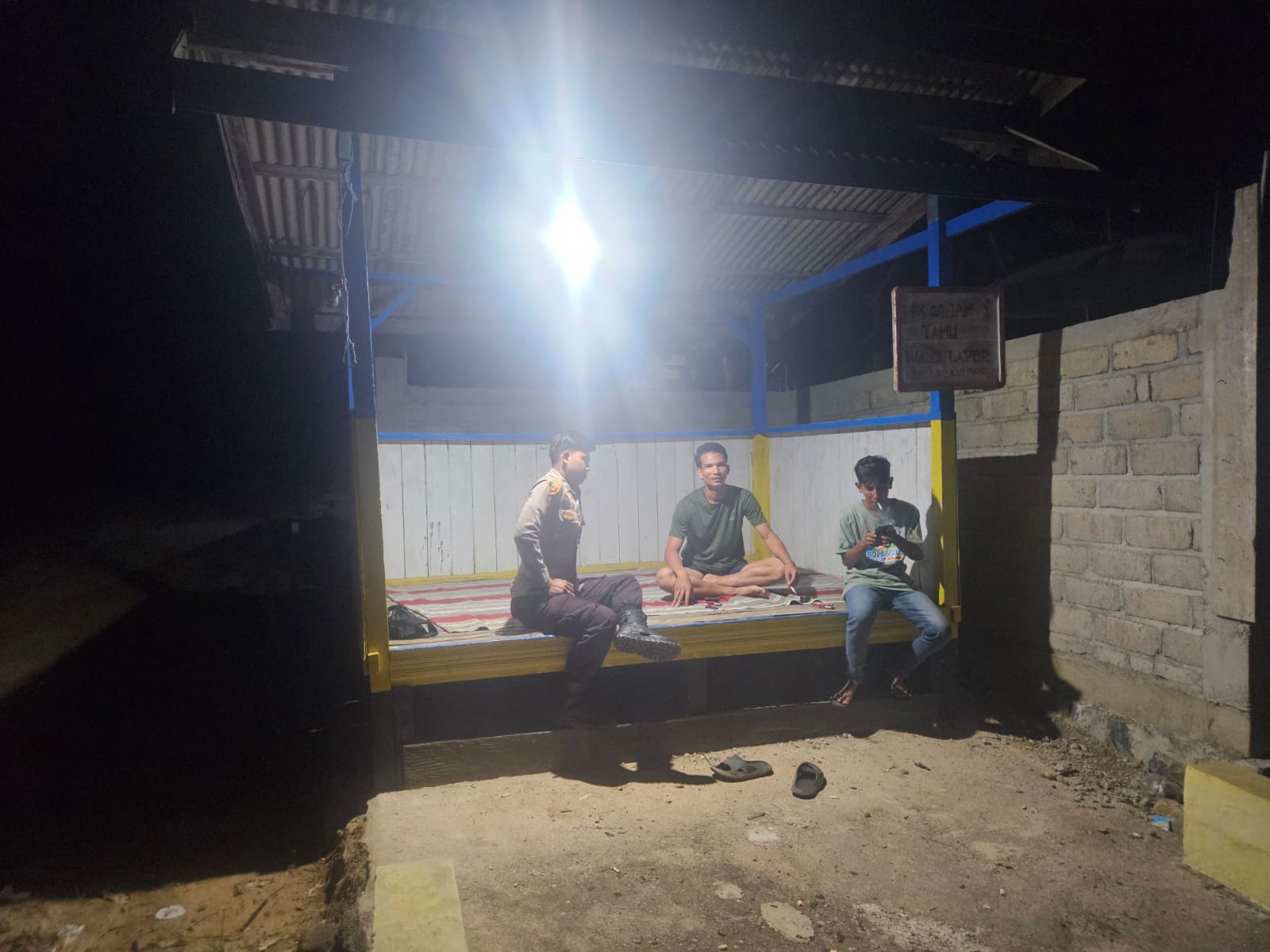 Polres lamandau – Bhabinkamtibmas Bripda Garin Andrean Dewantara Polsek Sematu Jaya, Menyambangi Piket jaga sat kamling Desa Nanuah, Kec. Menthobi Raya, Kab. Lamandau, Prov. Kalteng yang sedang jaga pos kampling, Rabu (24/9/25) malam.