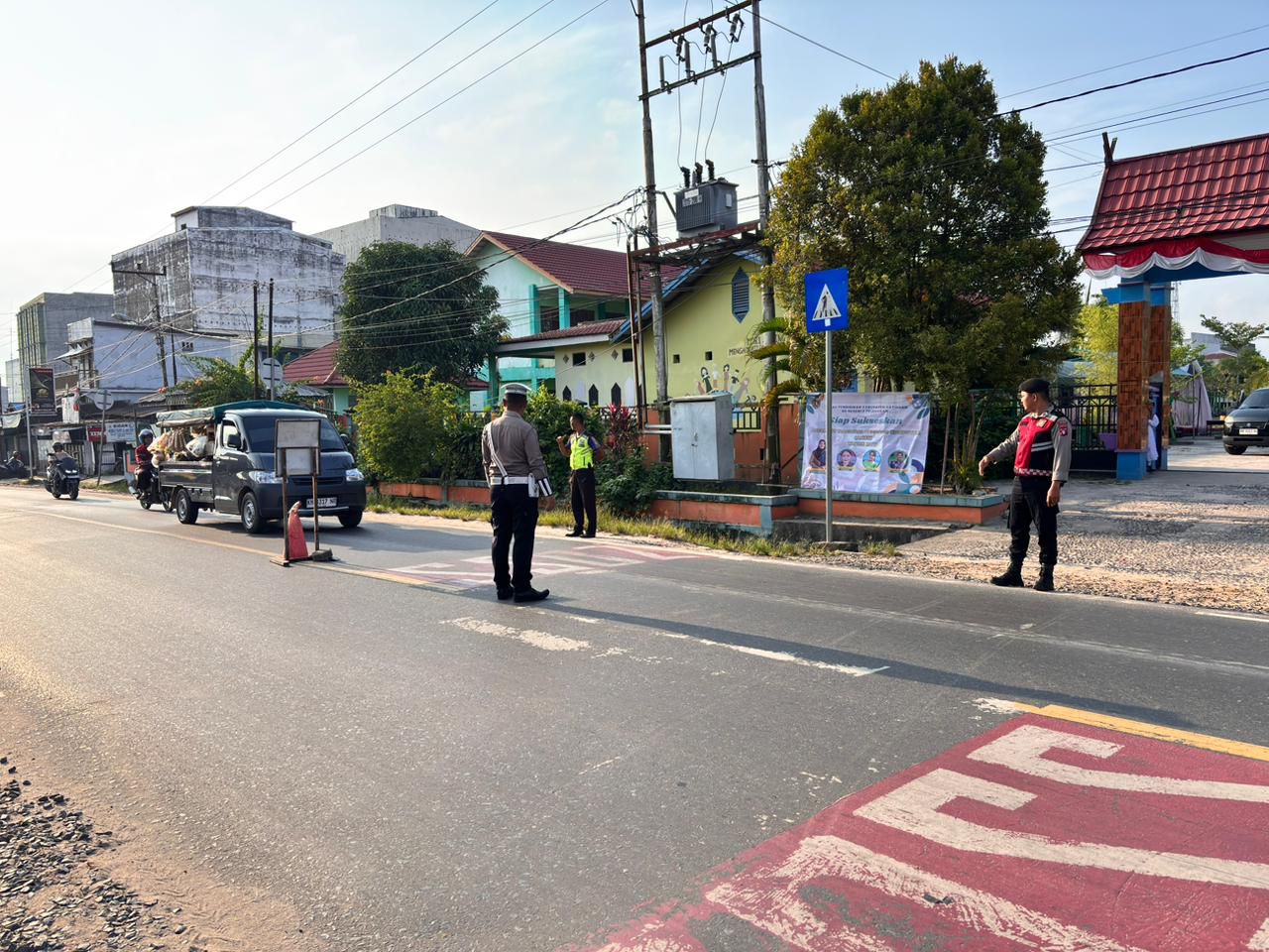 Kegiatan pengaturan lalu lintas di laksanakan oleh 4 personil Sat Samapta Polres Katingan yang sedang melaksanakan piket gatur setiap pagi pada pukul 06.00 WIB sampai pukul 07.00 WIB yang bertempat di jalan Tjilik Riwut KM.15 di depan SDN 3 Telangkah. Kamis (25/09/2025) pagi.