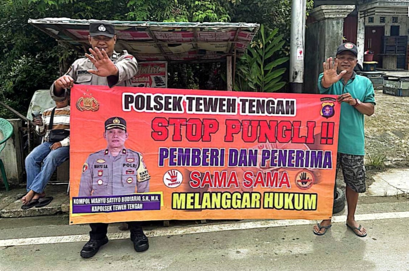 Kapolres Barut AKBP Singgih Febiyanto, S.H., S.I.K melalui Kapolsek Teweh Tengah KOMPOL Wahyu Satiyo Budiarjo, S.H., M.H. mengatakan anggota Polsek Teweh Tengah dengan humanis memberikan pemahaman dan edukasi kepada masyarakat untuk bersama-sama memberantas aktivitas pungutan liar serta mengedukasi bahwa pemberi dan penerima sama-sama melanggar hukum dan akan dikenakan sanksi Pidana,” Sabtu (27/09/2025) Pagi mulai Pukul 09:30 WIB.