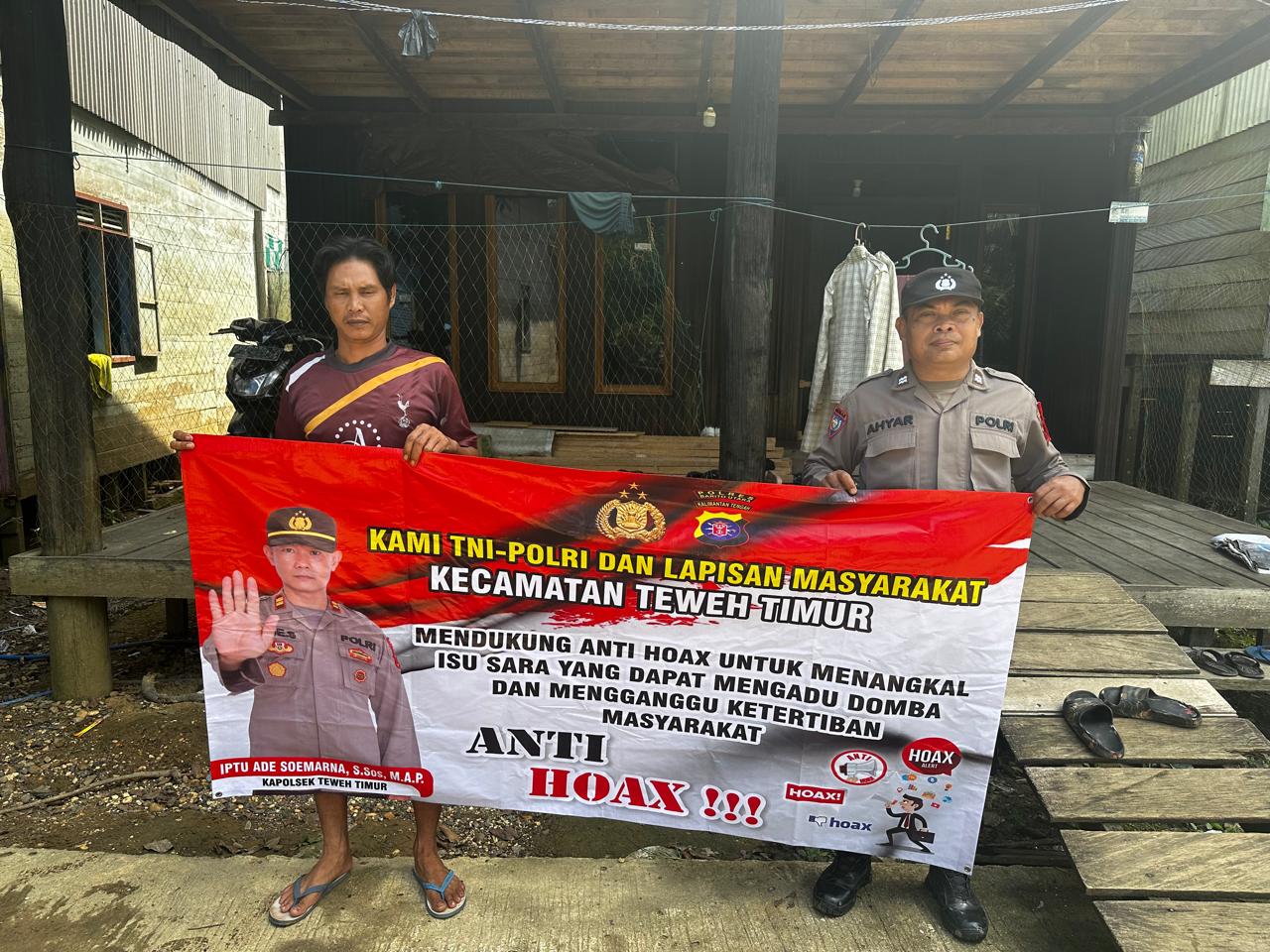 Dalam kegiatan ini, personel Polsek Teweh Timur juga mengajak masyarakat untuk bijak bermedia sosial serta melaporkan kepada pihak kepolisian jika menemukan adanya informasi palsu yang beredar.