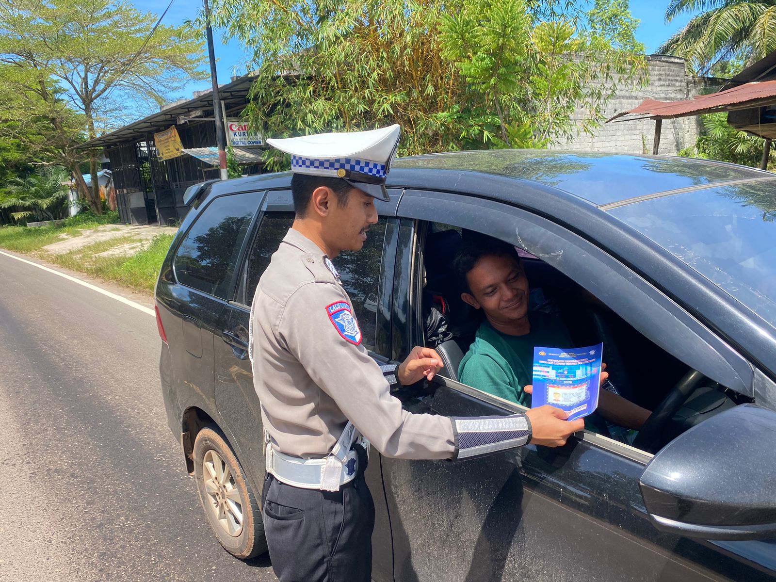 Polres Katingan – Salah satu cara Mewujudkan Kamseltibcarlantas Personil Satlantas Polres Katingan Membagikan Brosur Kepada Masyarakat Sembari Berikan Pesan Kamseltibcarlantas kepada pengguna jalan, Rabu (01/10/25).
