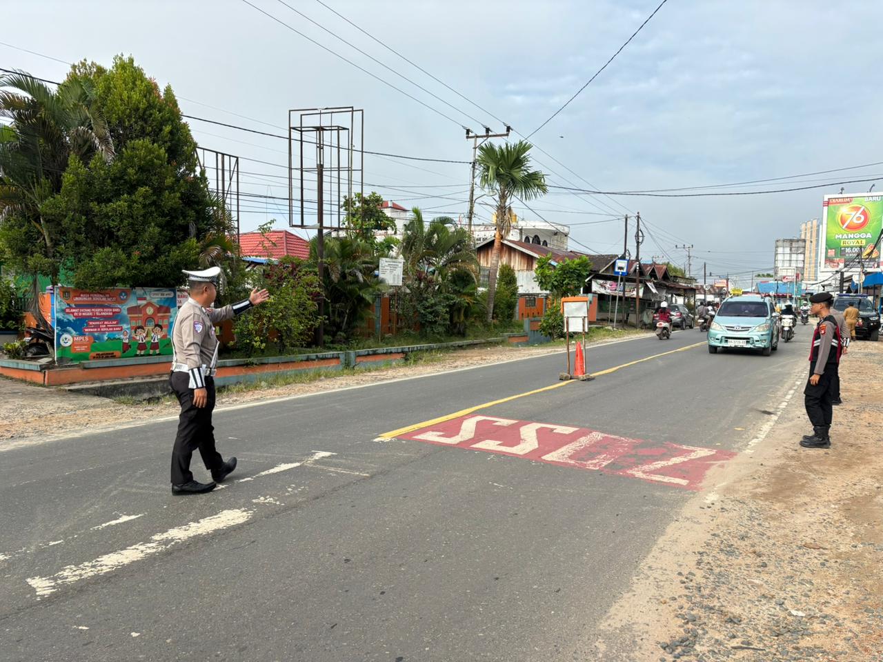 Katingan – Untuk tetap menjaga keselamatan pengendara, Sat Samapta Polres Katingan layani masyarakat dengan melaksanakan pengaturan lalu lintas di pagi hari
