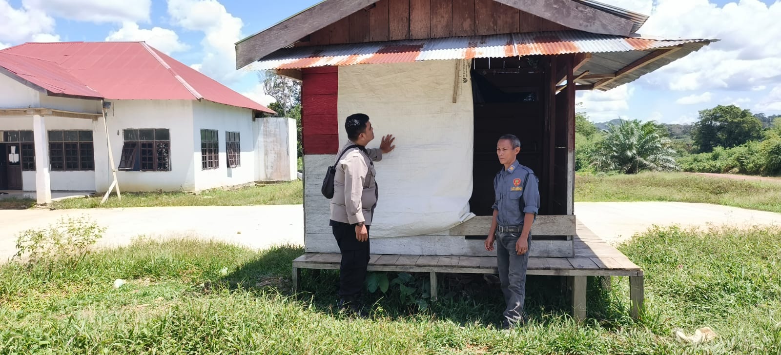 Polres Lamandau – Bhabinkamtibmas Polsek Delang Aipda Andi Suwarso Menyambangi warga untuk membahas dan koordinasi tentang Pengaktifkan kembali Pos kamling Desa Karang Mas, Kecamatan Batang Kawa,kab.lamandau, Kamis (9/10/25) Pagi.
