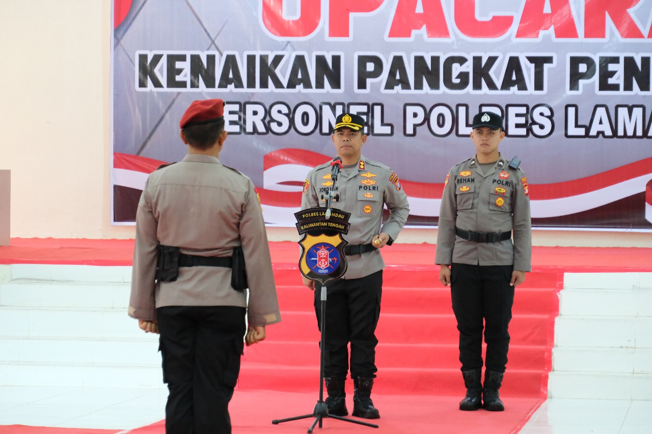 “Kenaikan pangkat pengabdian ini sebanyak 1 (Satu) personel anggota Polres lamandau Akp Isbenu Raharja menerima kenaikan pangkat pengabdian sebagai bentuk penghargaan atas dedikasi dan loyalitas selama bertugas di institusi Polri yaitu dari AKP (Ajun komisaris polisi) menjadi KOMPOL (Komisaris polisi).
