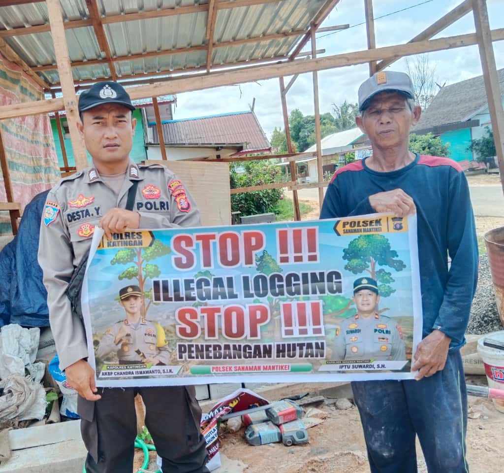 Kapolres Katingan AKBP CHANDRA ISMAWANTO , S.I.K.,melalui Kapolsek Sanaman Mantikei IPTU SUWARDI , S.H menjelaskan kegiatan Bhabinkamtibmas jajaran Polres Katingan dengan cara sosialisasi kepada masyarakat agar mengerti dan memahami tentang larangan dan sangsi bagi pelaku pekerja Ileggal Loging serta mengerti bahwa dampak dan akibat yang di timbulkan akibat Ileggal Loging tersebut.