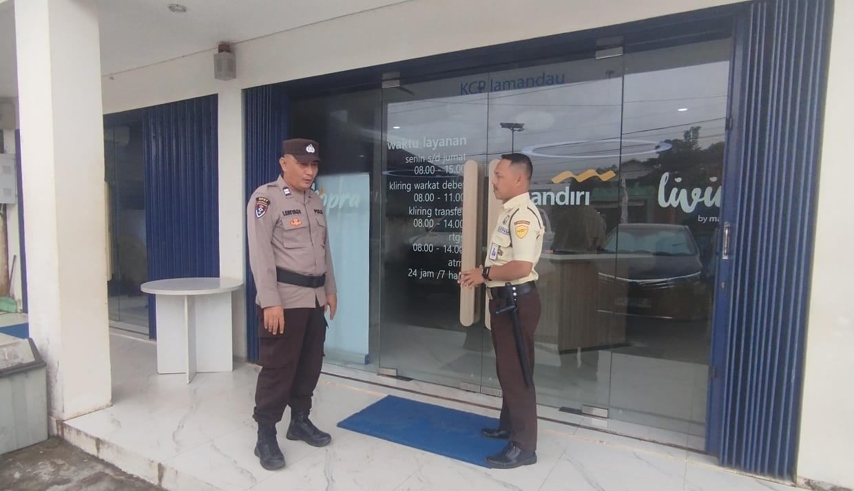Nanga Bulik – Petugas patroli Polsek Bulik menyambangi Satpam Bank Mandiri, di Kelurahan Nanga Bulik, Kecamatan Bulik, Selasa (21/10/25) Pagi.