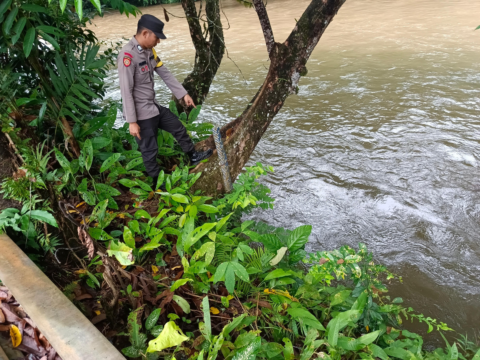 Polres Lamandau – Polsek Delang, Piket Polsek Delang melakukan kegiatan rutin pengecekan debit air DAS Delang di TMA Kelurahan Kudangan RT.02 Kecamatan Delang, Senin (27/10/25) Pagi