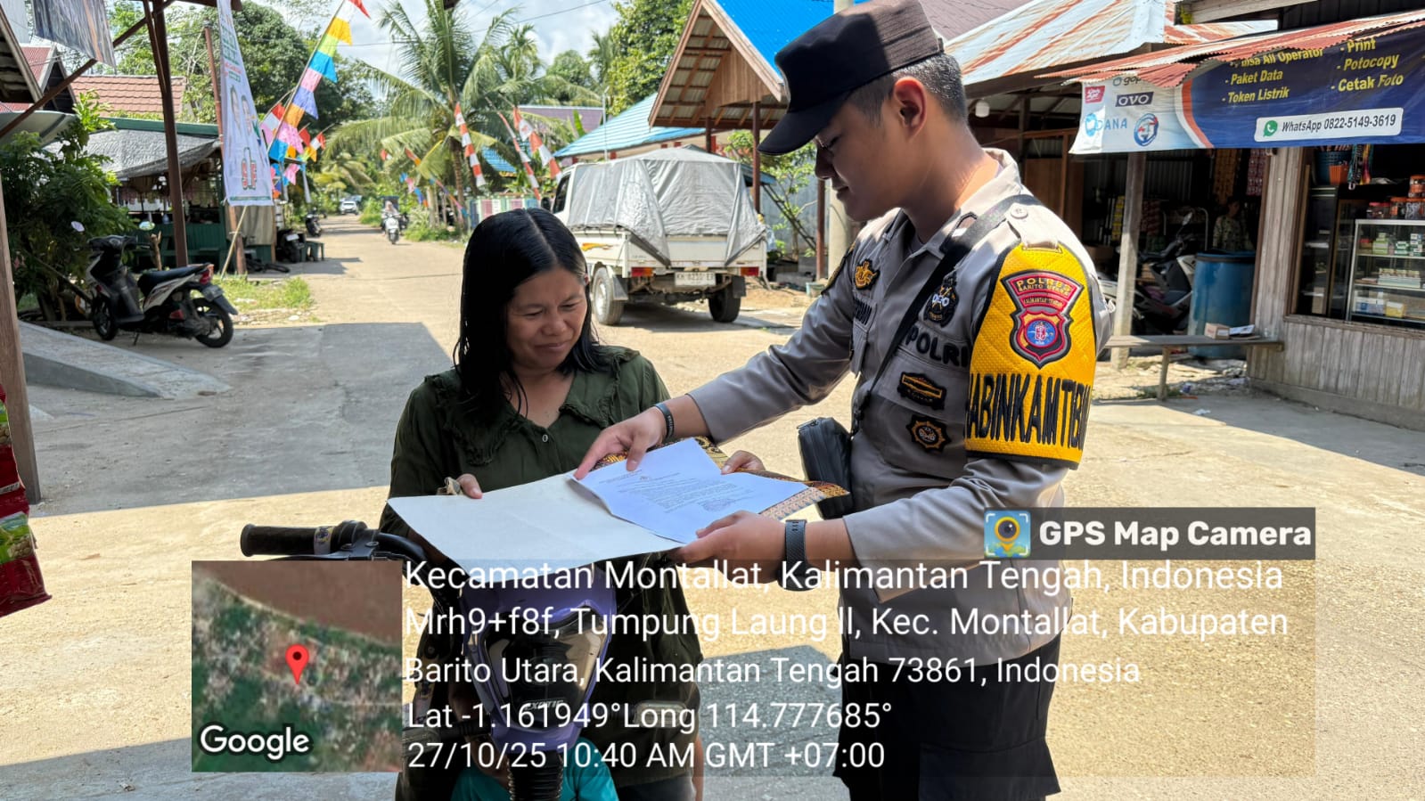 Tribratanews.kalteng.polri.go.id – Polres Barito Utara – Dalam rangka menjaga situasi keamanan dan ketertiban masyarakat (Kamtibmas) serta mempererat hubungan dengan masyarakat, Polsek Montallat secara rutin melaksanakan kegiatan sambang Door to Door System (DDS). Kegiatan ini dilakukan oleh personel Bhabinkamtibmas untuk mendengarkan langsung aspirasi dan keluhan masyarakat.