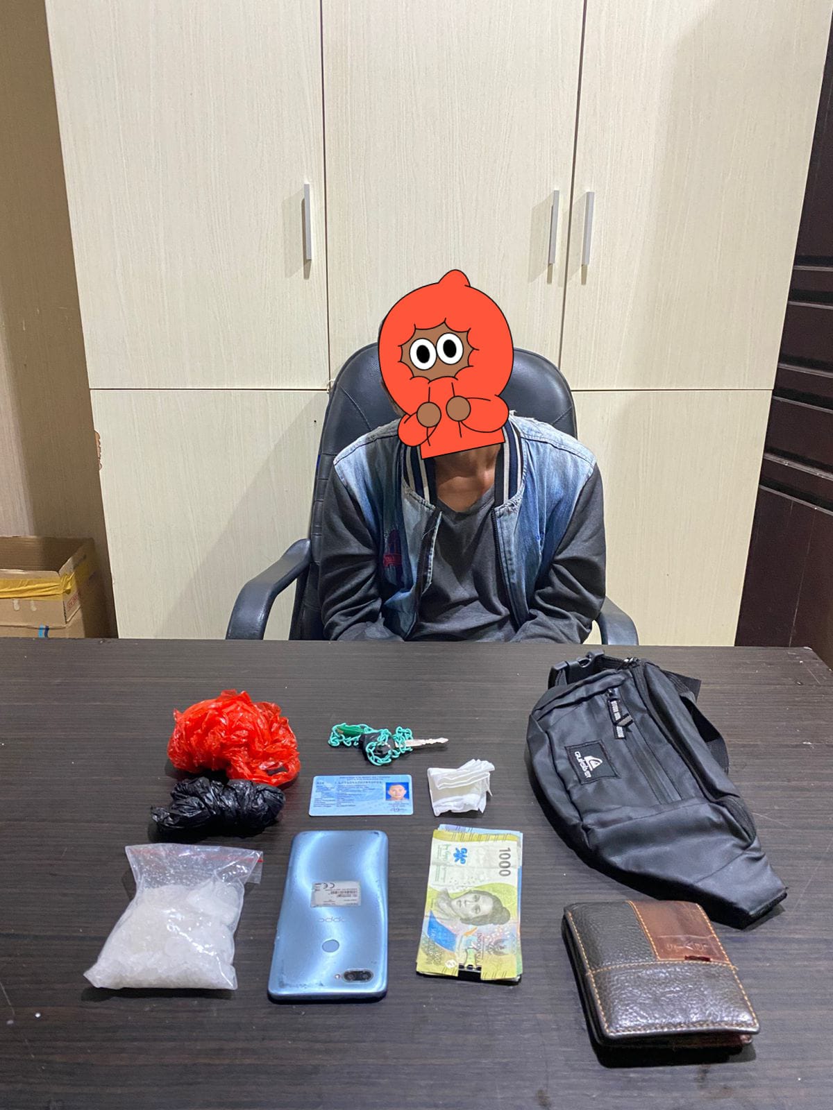 Saat dilakukan penggeledahan yang disaksikan perangkat RT setempat, petugas menemukan satu paket sabu dengan berat kotor sekitar 106 gram. Barang tersebut dibungkus menggunakan tisu putih, kantong plastik hitam, dan kantong plastik merah. Pelaku sempat membuang paket itu ke parit sebelum diamankan petugas.