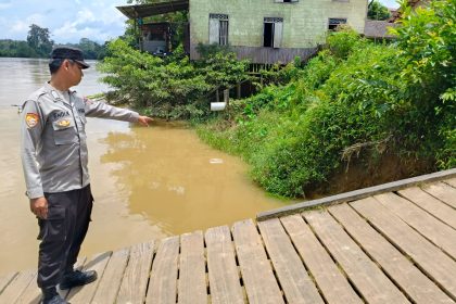 Antisipasi Bencana Banjir, Personil Polsek Marikit Pantau Debit Air DAS Katingan.