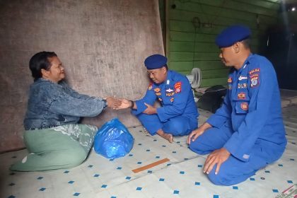 Berbagi Bansos, Upaya Ditpolairud Polda Kalteng Menjaga Kamtibmas Di Desa Pegatan Hilir Das Katingan