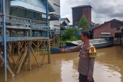Polres Lamandau – Personel Polsek Lamandau Melaksanakan Patroli dan Pantau Cek debit air Sungai Lamandau Antisipasi terjadinya Bencana banjir di Wilayah Kabupaten Lamandau Khususnya Kecamatan La...