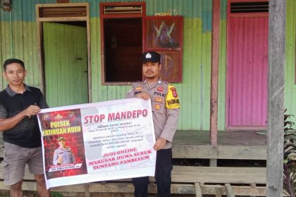 Polda Kalteng – Polres Katingan – Personel Bhabinkamtibmas Polsek Katingan Hulu dan Bukit raya Brigpol Reaynold B. Butar-Butar melaksanakan sosialisasi tentang larangan terhadap pelaku Ilegal M...