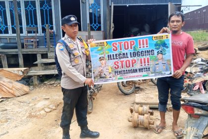 Polda Kalteng – Polres Katingan – Personel Bhabinkamtibmas Polsek Katingan Hulu dan Bukit raya Brigpol Reaynold B. Butar-Butar melaksanakan sosialisasi tentang larangan terhadap pelaku Ilegal M...