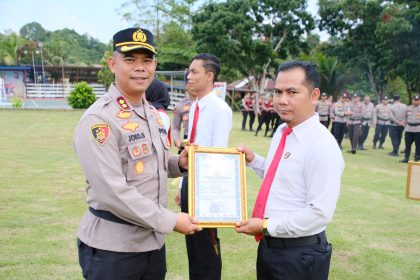 Nanga Bulik – Kapolres Lamandau AKBP Joko Handono, S.I.K., M.H. memimpin langsung upacara pemberian penghargaan kepada personel Polres Lamandau yang berprestasi dalam pelaksanaan tugas, bertempat di h...