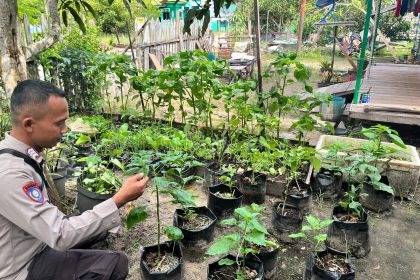 Bhabinkamtibmas Polsek Katingan Kuala Melakukan Pengecekan Lokasi Pemanfaatan Lahan Pekarangan Warga