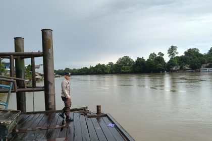 Polres Lamandau – Personel Polsek Lamandau Melaksanakan Patroli dan Pantau Cek debit air Sungai Lamandau Antisipasi terjadinya Bencana banjir di Wilayah Kabupaten Lamandau Khususnya Kecamatan La...