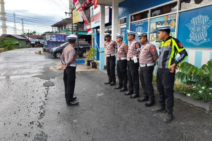 Polres Katingan- sebagai upaya persiapan pengaturan lalu lintas pada titik padat aktivitas masyarakat personel satlantas melaksanakan apel di depan pos lantas kereng pangi yang dipimpin langsung oleh ...