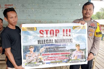 Polda Kalteng – Polres Katingan – Personel Bhabinkamtibmas Polsek Katingan Hulu dan Bukit raya Brigpol Reaynold B. Butar-Butar melaksanakan sosialisasi tentang larangan terhadap pelaku Ilegal M...