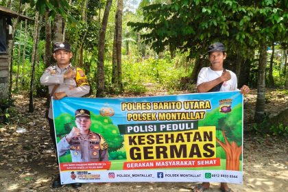 Tribratanews.kalteng.polri.go.id – Polres Barito Utara – Personel Polsek Montallat jajaran Polres Barito Utara, Polda Kalteng melaksanakan Sosialisasi Germas di Kel. Tumpung laung ll Kec. Montallat, K...
