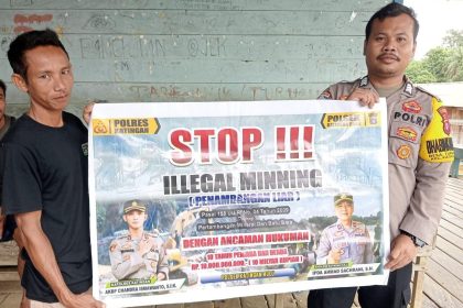 Polda Kalteng – Polres Katingan – Personel Bhabinkamtibmas Polsek Katingan Hulu dan Bukit raya Brigpol Reaynold B. Butar-Butar melaksanakan sosialisasi tentang larangan terhadap pelaku Ilegal Mining k...