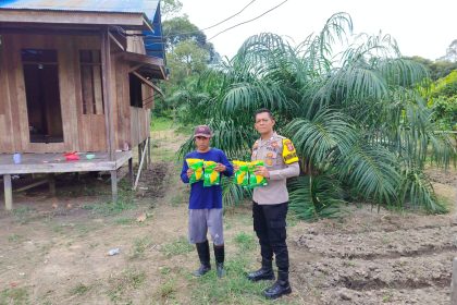 Lamandau – Bhabinkamtibmas Polsek Kudangan Bripka Robert Riady yang membina wilayah Kelurahan Kudangan dan Desa Penyombaan, melaksanakan kegiatan penyaluran bantuan bibit jagung jenis Hib...