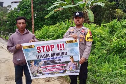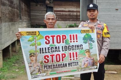 Polda Kalteng – Polres Katingan – Personel Bhabinkamtibmas Polsek Katingan Hulu dan Bukit raya Brigpol Reaynold B. Butar-Butar melaksanakan sosialisasi tentang larangan terhadap pelaku Ilegal M...