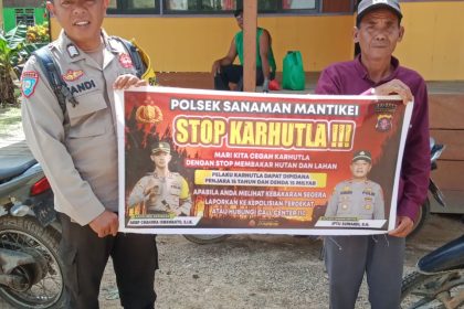 Polres Katingan- Personil Polsek Sanaman Mantikei melakukan sosialisasi larangan membuka hutan dan lahan dengan cara di bakar di wilayah Kecamatan Sanaman Mantikei, Selasa (04/11/2025). Kapolse...