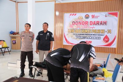 Nanga Bulik — Dalam rangka memperingati Hari Ulang Tahun (HUT) Humas Polri ke-74, Polres Lamandau menggelar kegiatan donor darah dengan tema “Polisi Humanis Harapan Masyarakat”, bertempat di Joglo Map...
