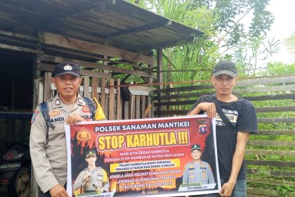 Polres Katingan- Personil Polsek Sanaman Mantikei melakukan sosialisasi larangan membuka hutan dan lahan dengan cara di bakar di wilayah Kecamatan Sanaman Mantikei, Sabtu (01/11/2025). Kapolsek...