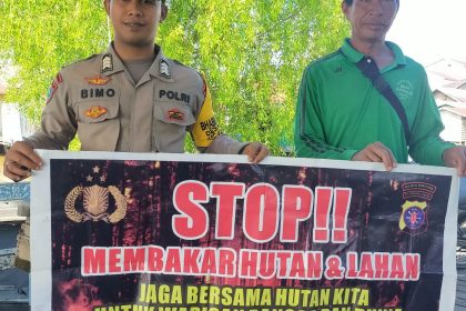 Polres Katingan- Personil Polsek Sanaman Mantikei melakukan sosialisasi larangan membuka hutan dan lahan dengan cara di bakar di wilayah Kecamatan Sanaman Mantikei, Minggu (26/10/2025). Kapolsek Sanam...